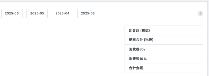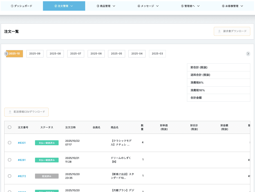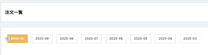 クリックすると月毎に注文のあったデータを一覧で表示。
