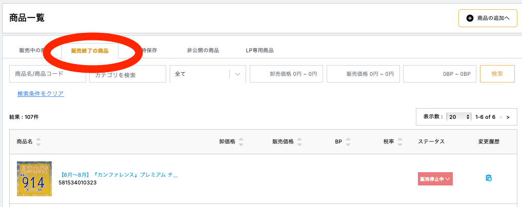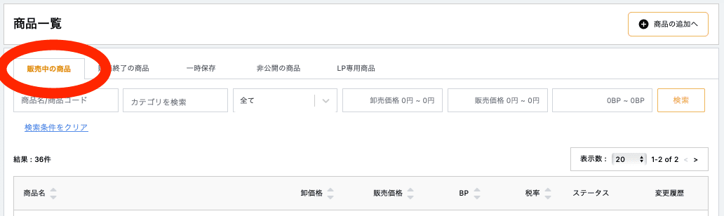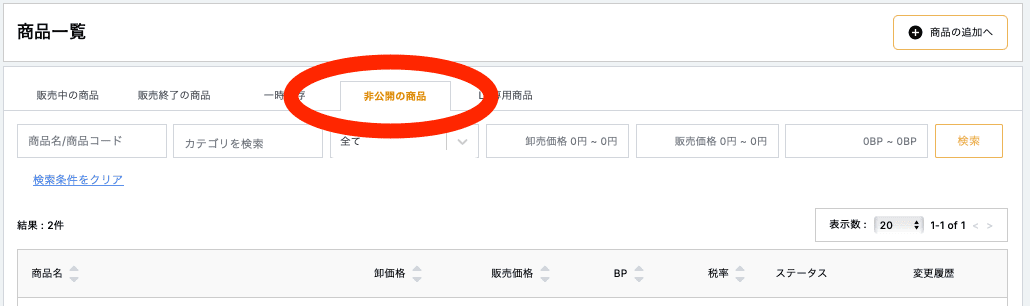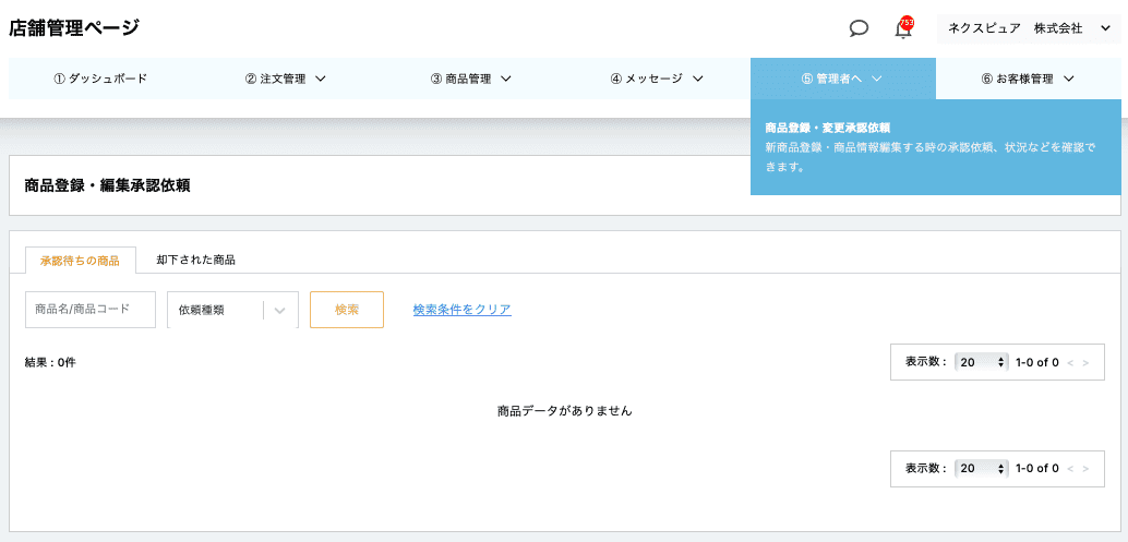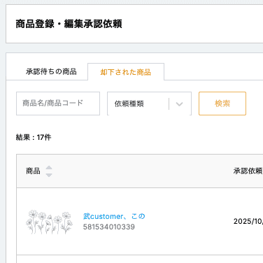 『承認待ちの商品』と『却下された商品』のみとなります。