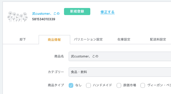 商品の修正から在庫設定を行うことは基本的にNGとし、