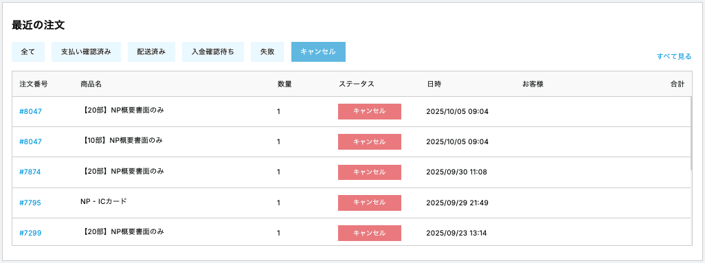注文された商品が何かしらの理由でキャンセルとなったものがステータスキャンセルとなり、