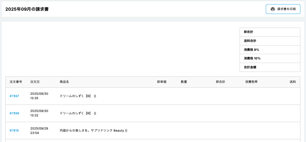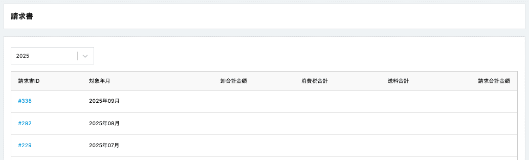 対象月の請求書IDをクリックした後の画面が上の画像です。