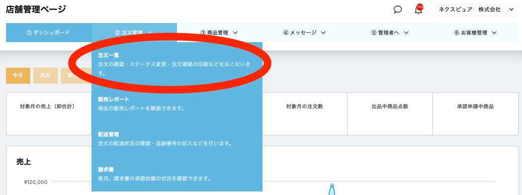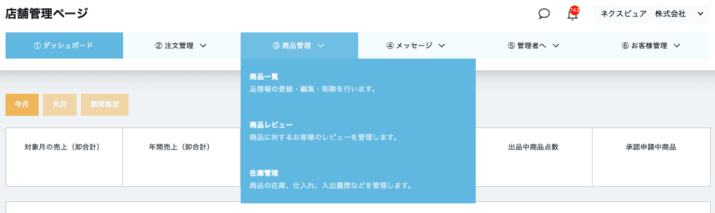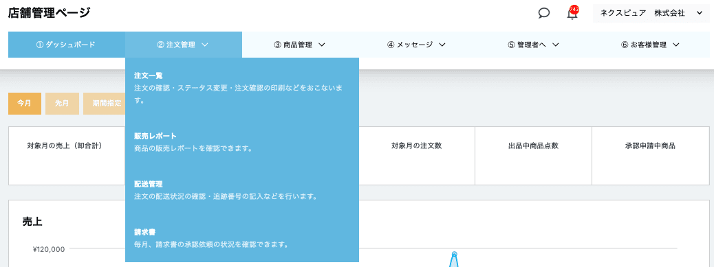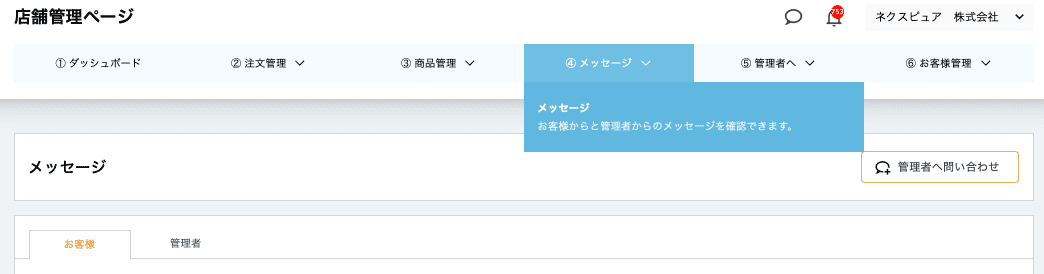 購入者とのやり取りや管理者とのやり取りが可能な場所となります。