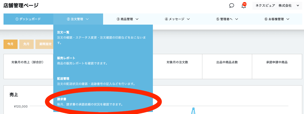 商品申請に関する内容を管理者とやり取りする事が可能です。