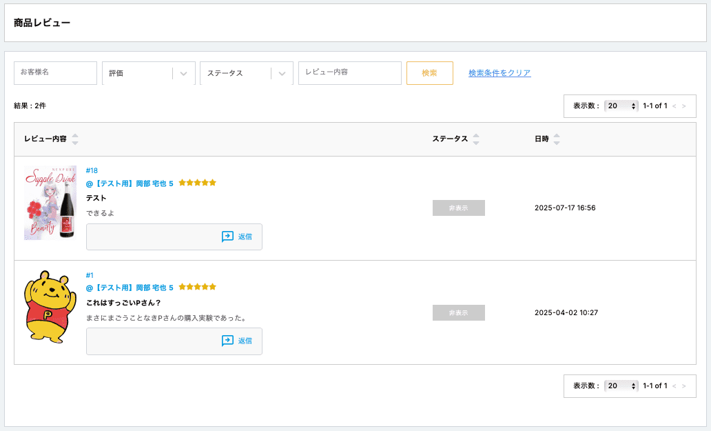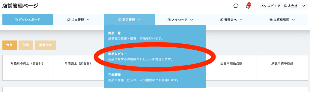 ご自身の商品にレビューがついた場合、レビューがついた商品が一覧で表示されます。