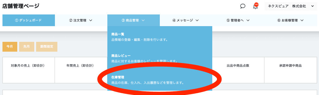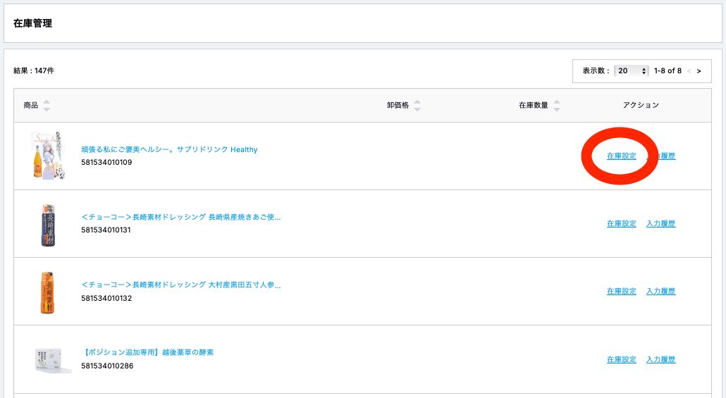 赤丸の在庫設定をクリックして次の画面へ飛びます。