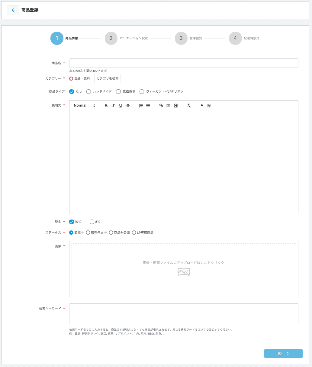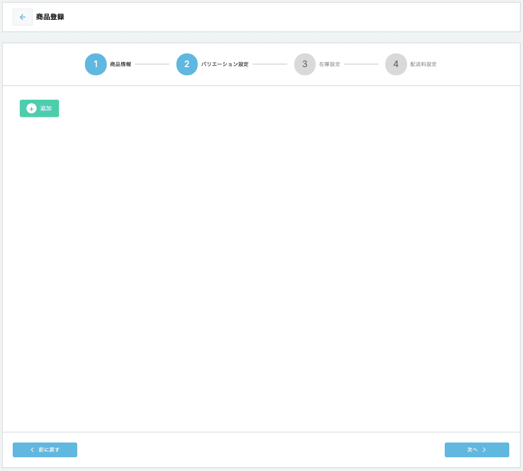 ここではサイズ、カラー、重さなど1つの商品に対して